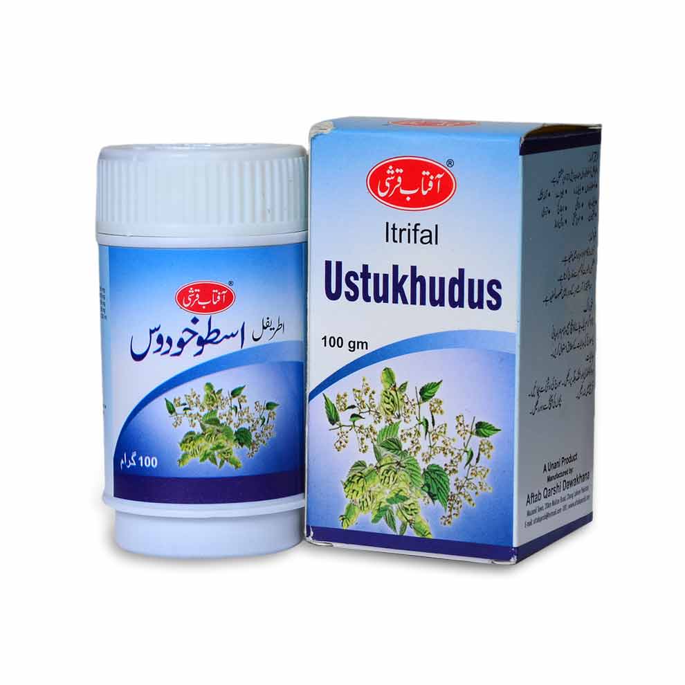 Aftab Qarshi itrifal Usturkhudus is a pure herbal & natural product . itrifal Usturkhudus is effective for catarrhal conditions & headache . Expels the phlegmatic fluid from the body . itrifal Usturkhudus beneficial for migraine . Adults , 10gm ( 1 teaspoon ) 2 times a day with water or directed by physician .